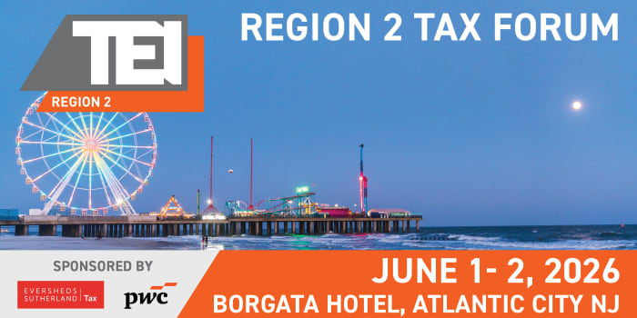 The 2026 TEI Region 2 Tax Forum will bring together in‑house tax professionals from across the region for 1.5 days of technical learning, professional development, and peer networking. Hosted at the Borgata Hotel in Atlantic City.